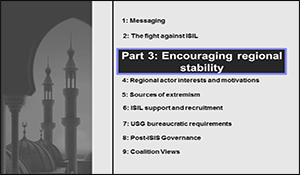 - What opportunities are there for USCENTCOM to shape a post-ISIL Iraq and regional security environment promoting greater stability?